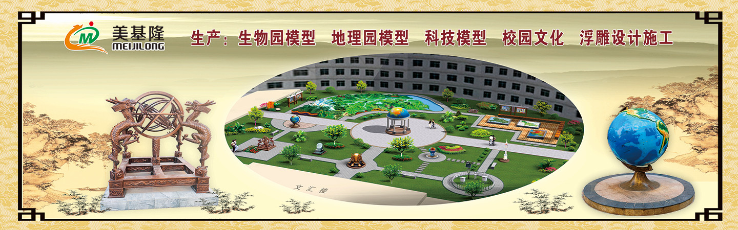 廣東順德美基隆園林藝術(shù)有限公司是集產(chǎn)品開發(fā) , 設計制作校園雕塑文化、地理園、生物園、生態(tài)園、科技園,浮雕、人物雕像仿真動物,綠化校園中小學實驗室配套為一體的大型教學設備企業(yè)廠家。廣東順德美基隆園林藝術(shù)有限公司自成立以來,堅持以質(zhì)量立品牌、藝術(shù)求真知、專業(yè)為教育、服務守承諾的服務宗旨,致力于教育行業(yè),并為教育事業(yè)提供高品質(zhì)的設計、制作、銷售、安裝等優(yōu)質(zhì)的服務。